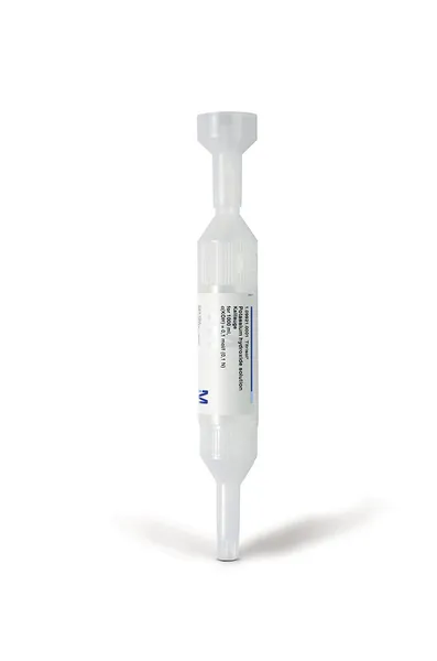 This volumetric solution is analyzed by our calibration laboratory D-K-15185-01-00 which is accredited according to DIN EN ISO/IEC 17025 for analysis of amount-of-substance concentrations in volumetric solutions by DAkkS (Deutsche Akkreditierungsstelle – German National Accreditation Body). The accreditation certificate can be found at www.sigmaaldrich.com/ISO17025.